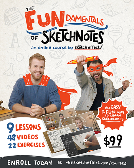 Our online visual note taking course, "The FUNdamentals of Sketchnotes," is perfect for sketchnoting beginners, and equally enriching for those already versed in visual note-taking.